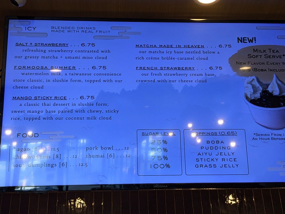 Yun Tea House in San Diego offers a delicious fusion of desserts, bubble tea, and sandwiches. With a focus on quality and customization, customers rave about the Mango Sticky Rice drink, watermelon smoothie, and the popular Dark Phoenix tea. The menu reflects authentic Taiwanese flavors with options like Matcha made in heaven and Shumai. The ambiance of the cafe provides a chill setting for studying or hanging out, complete with ample seating and charging ports. The attentive service from staff like Michelle, Ali, Jacob, Jet, Cyrene, and Yi Wei adds to the pleasant dining experience. Yun Tea House stands out for its commitment to customer satisfaction, evident in their willingness to offer samples of milk teas before ordering. Whether you're looking for a refreshing drink or a satisfying meal, Yun Tea House promises a delightful visit.